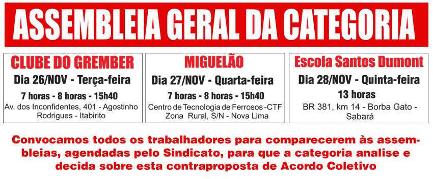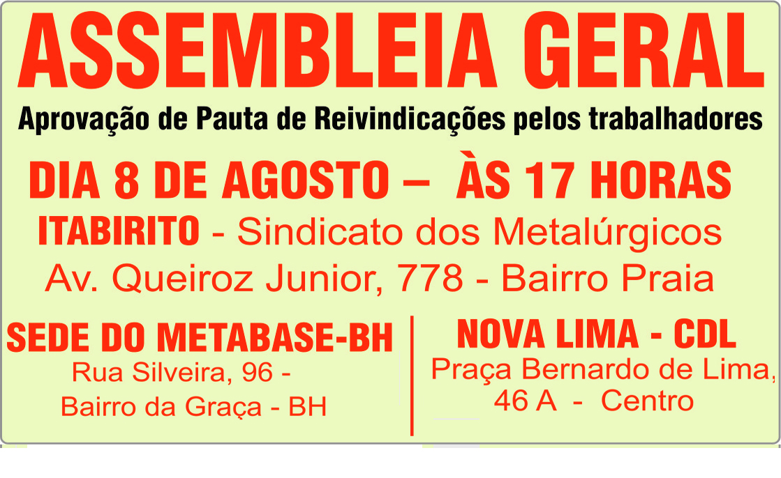 Data baseSindicato convoca para Assembleia Geral para aprovação de pauta de reivindicaà Leia mais...