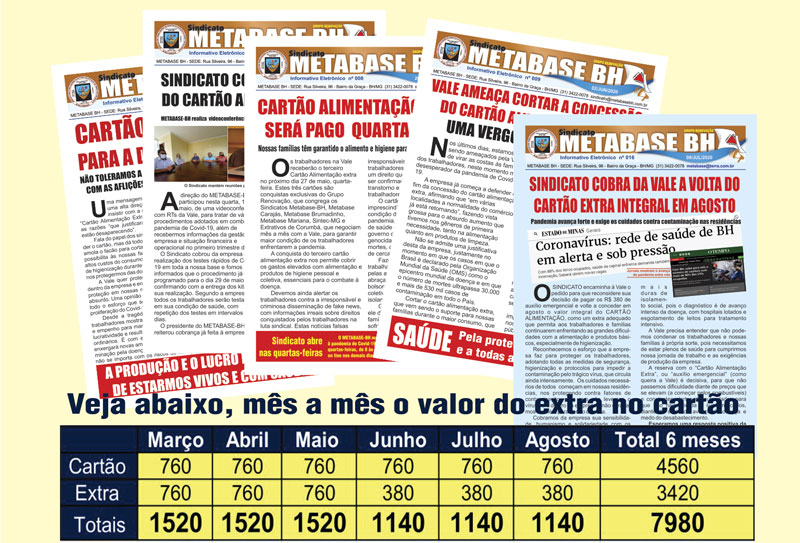 Pandemia Covid-19SINDICATO COBRA DA VALE MANUTENÇÃO DO CARTÃO ALIMENTAÇÃO EXTRA Leia mais...